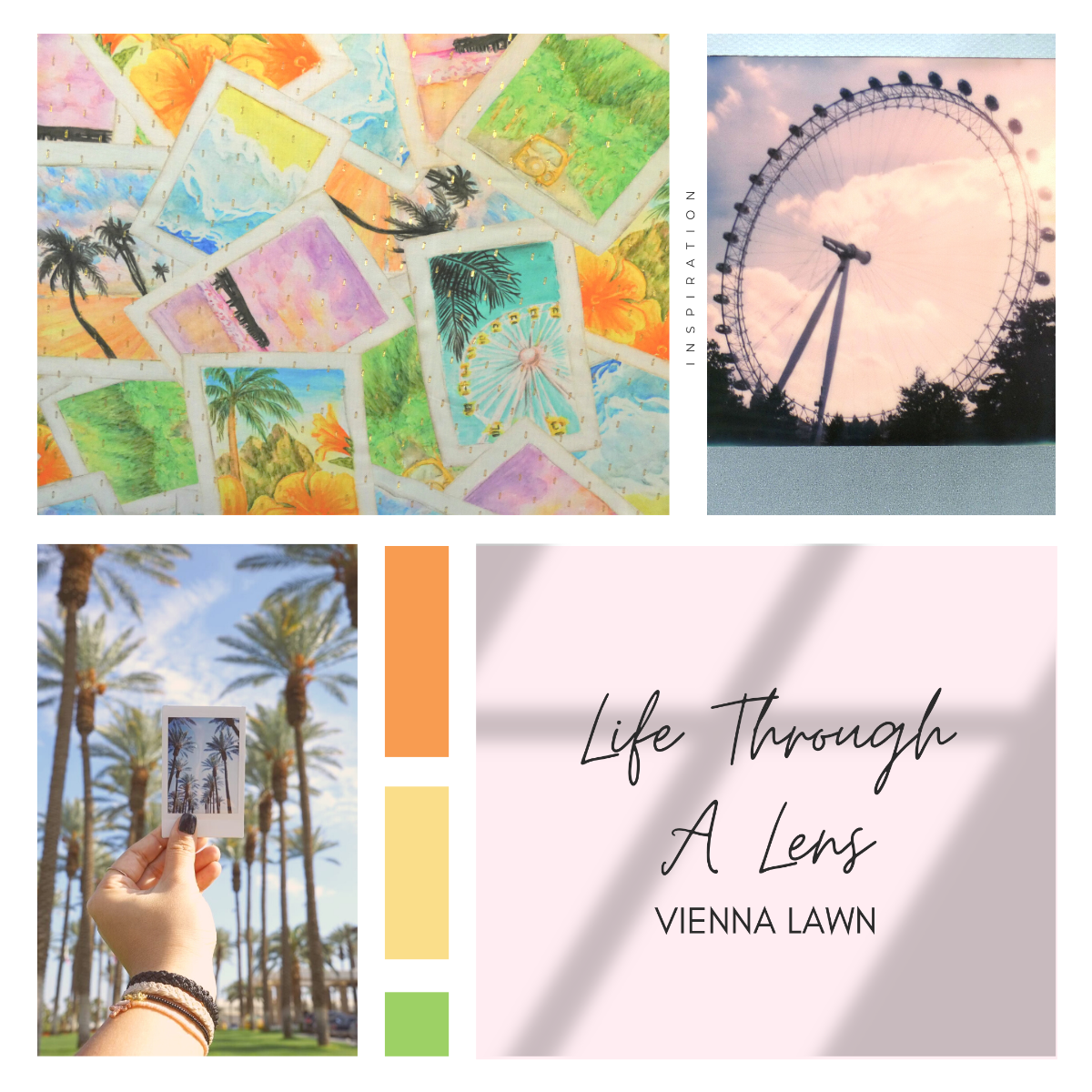 Lady McElroy Life Through A Lens is the perfect holiday travels print, inspired by instant polaroid snapshots from around the world. A vibrant mix of turquoise, citrus yellow, sunset orange, lavender pink, lush green and aqua; this stunning print will brighten up any day!