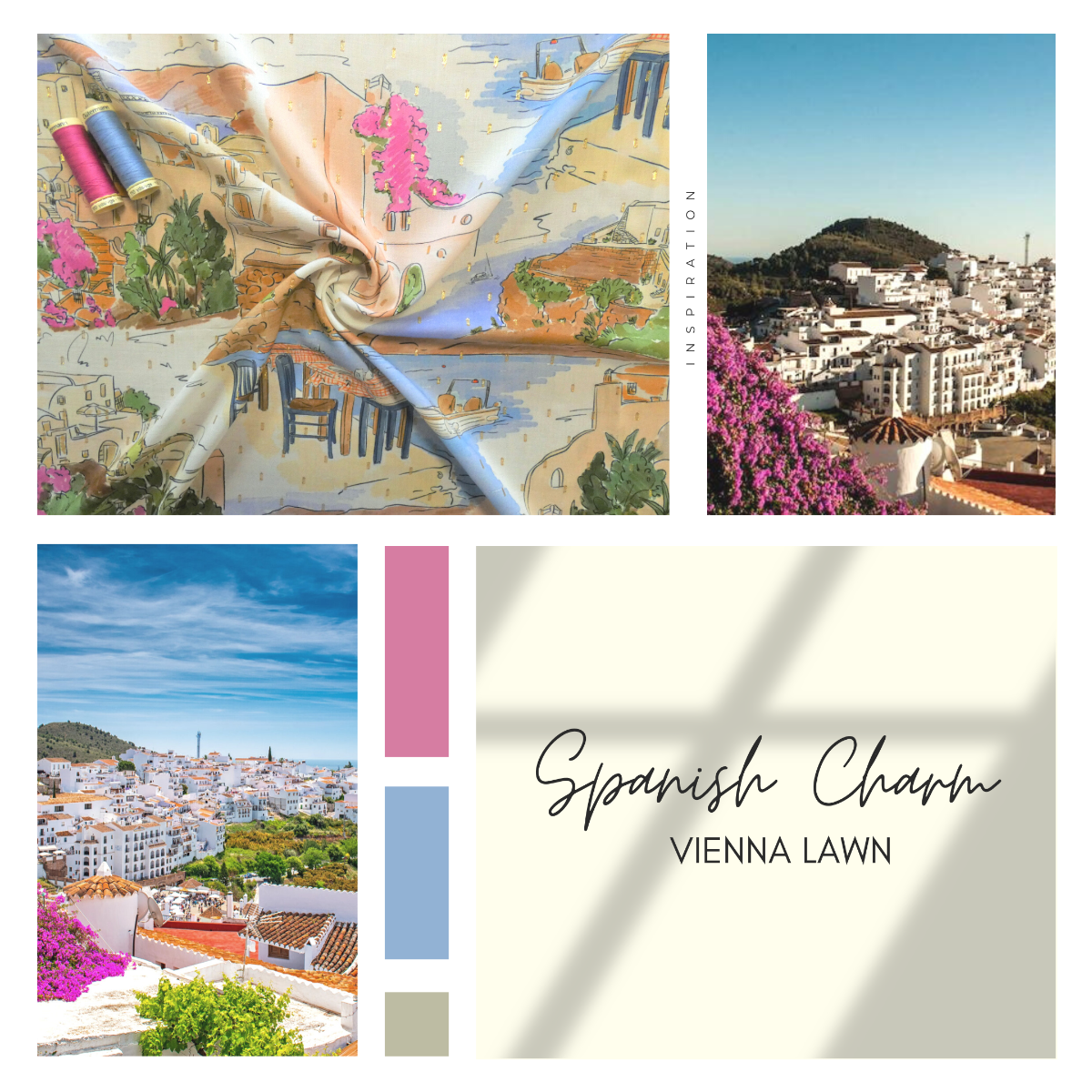 Lady McElroy Spanish Charm is a lovely combination of soft pastel tones and is inspired by beautiful Spanish countryside. This print is perfect for summer dresses, floaty blouses, scarves, skirts and much more..!